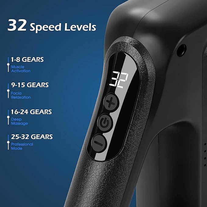 - High-Torque and Low Noise Motor: Power and Heat-dissipation are designed to the ultimate, providing strong vibration to 11mm deep muscle tissue, effectively alleviating muscle tension and pain. The 35 ~ 55db sound of the motor will not disturb anyone around. In the highest speed mode, it remains stable without causing hand numbness.