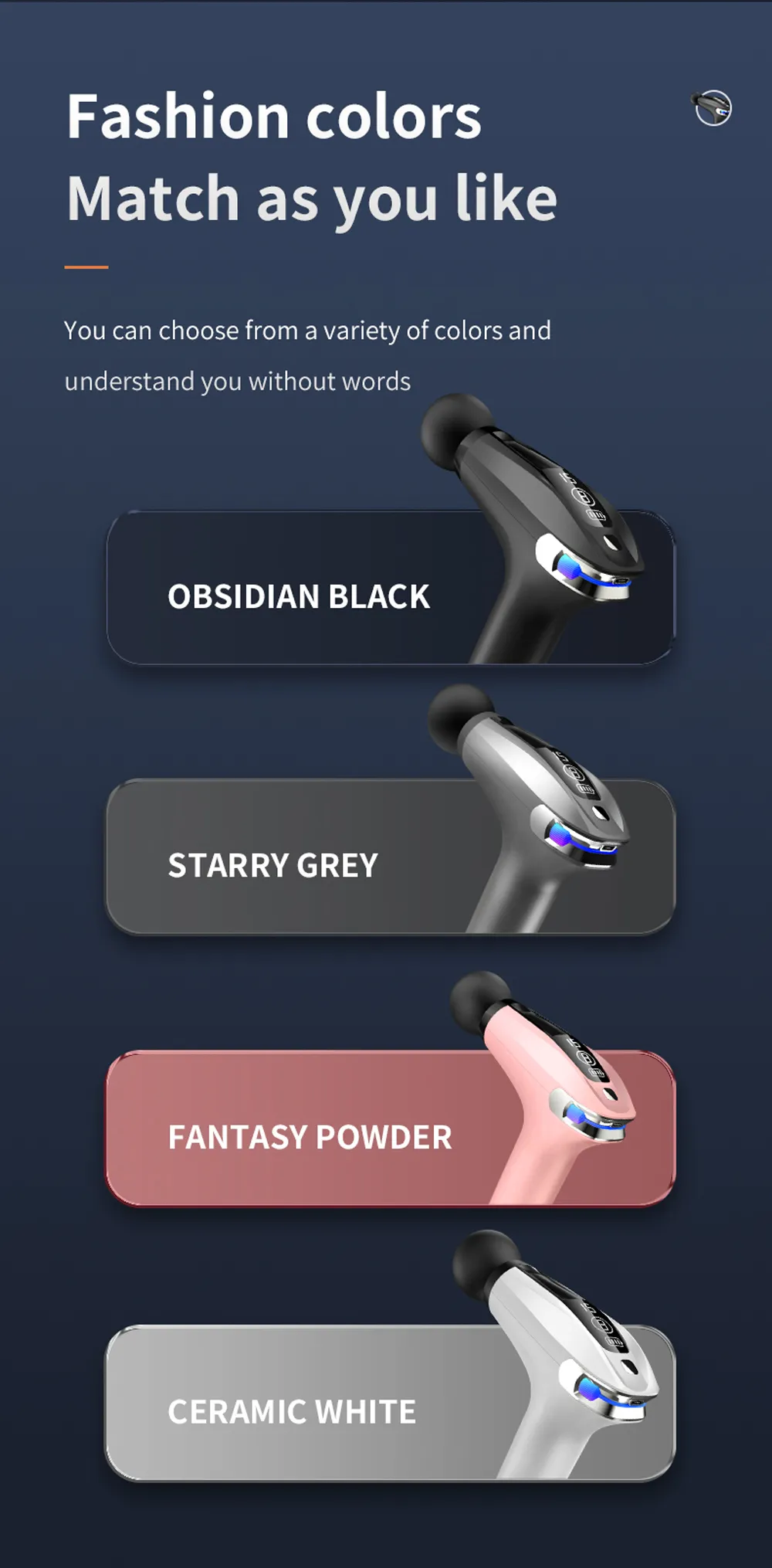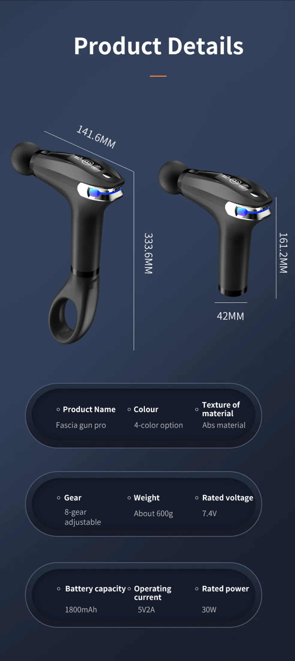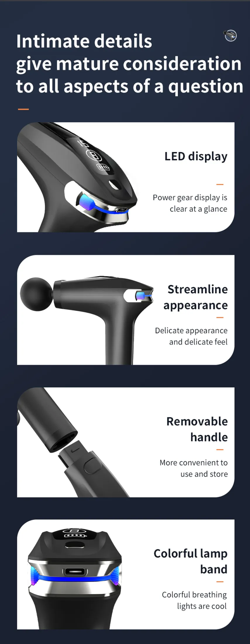【8 Different Intensity Levels】: The frequency can be adjusted according to the different parts of the massage. The high-power motor will bring 1200-3200 strikes per minute. The user can change the speed of the massage as needed to provide a relaxing massage for each muscle.