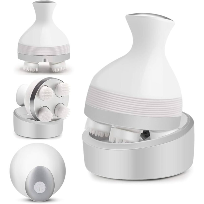 - DEEP SCALP MASSAGER: Smart scalp massager has four massage heads with 21 individual nodes,3D Deep-Kneading, perfectly fits the scalp, provide experience same as hand-simulation, fully massage head with each silicone head rotates both in clockwise and anti-clockwise direction giving you a soothing massage ,deep scalp clean, promoting relaxation, releasing stress.