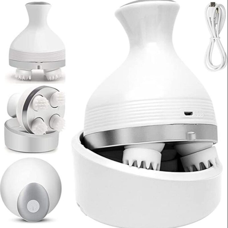 - PORTABLE AND REACHRAGABLE: The electric hair scalp massager is powered by rechargeable lithium-ion battery, so no need to plug in while in use giving you flexibility to enjoy a perfect massage anywhere without annoying wire. The massage tool comes with a charging base and a USB charging cable and it lasts for 7-10 massages on one full charge. It’s compact, cordless portable design allows you to massage and relieve tension from your office, home or even your car. LEISURE WHEN YOU NEED IT..