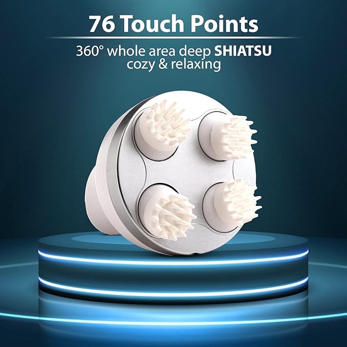 - 【Deep Scalp Massage】4 massager heads with 28 individual 3D Deep-Kneading,perfectly fit the scalp, hand-simulation,deep and fully massage head. Increase blood circulation to the scalp, boosting hair growth,promoting relaxation,releasing stress and relieving sore. Gets you to sleep soon.