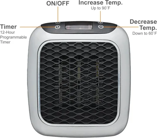 - Customizable Heating Comfort: Featuring an adjustable thermostat (60–90°F) and a programmable 12-hour timer, the Handy Heater
